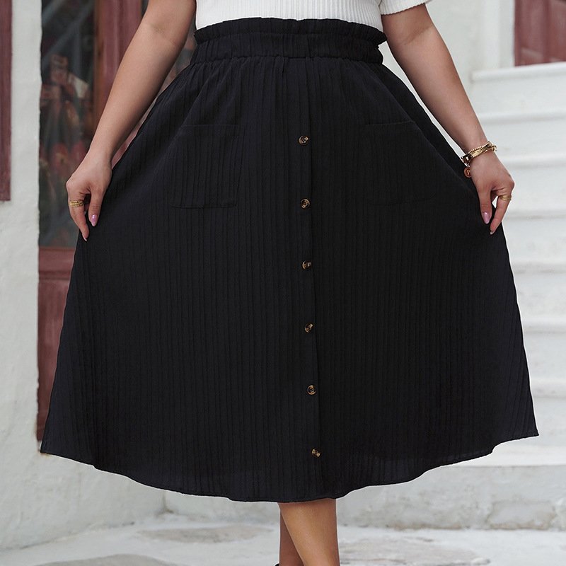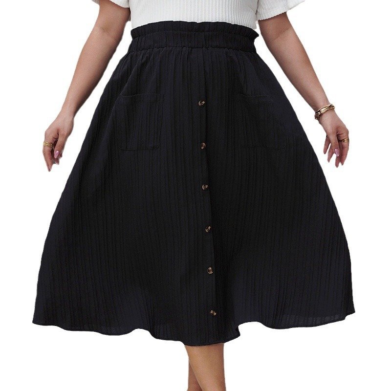 This elegant high-waisted A-line skirt is designed for comfort and style. It features a classic button closure and a loose fit that flatters various body shapes. The lightweight polyester blend fabric provides a soft feel, while the cotton material ensures breathability. It’s perfect for both casual outings and more formal occasions.