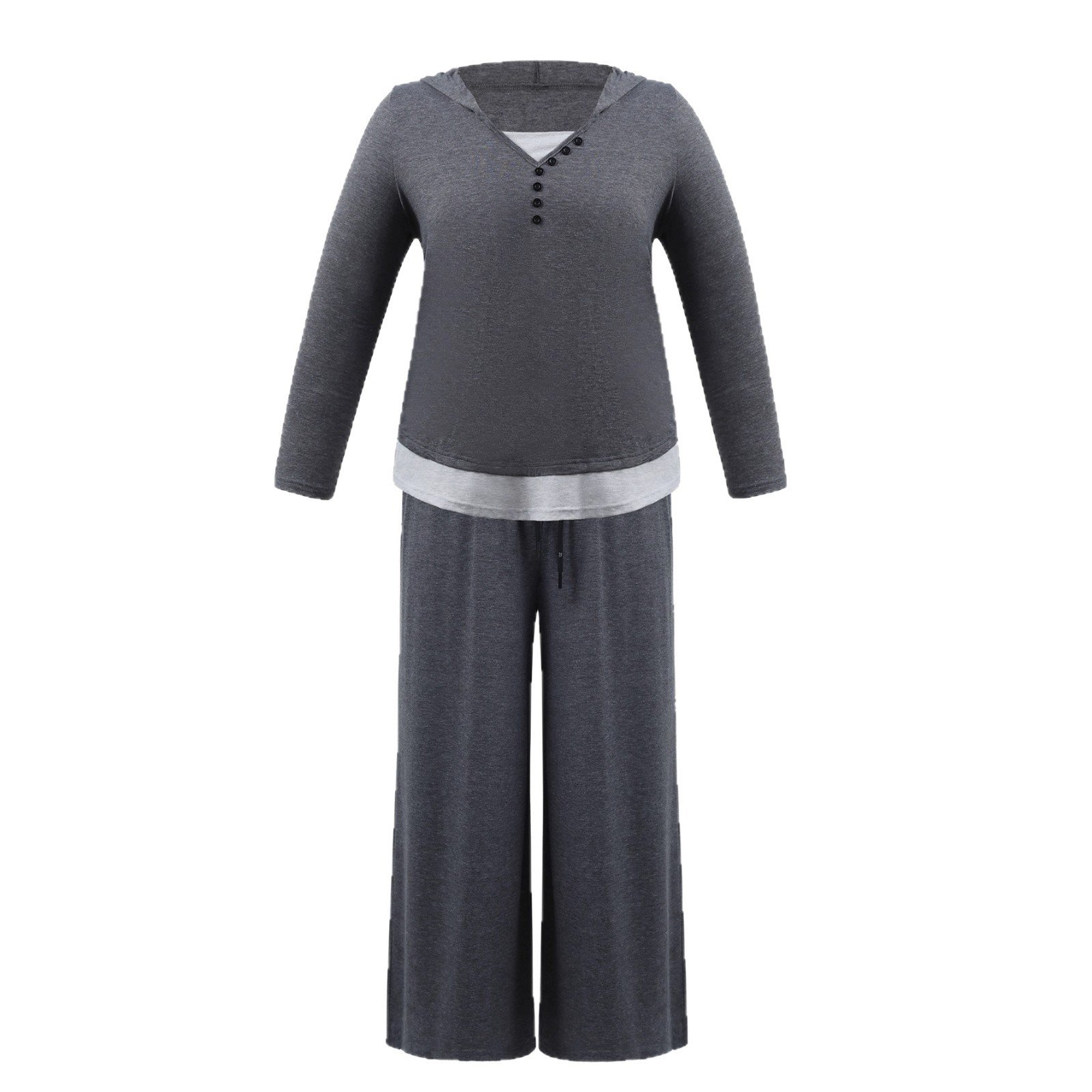 This cozy and stylish casual set is perfect for a range of occasions. Made from soft polyester, it ensures comfort throughout your day. The nine-point length pants are perfect for a relaxed yet chic look.