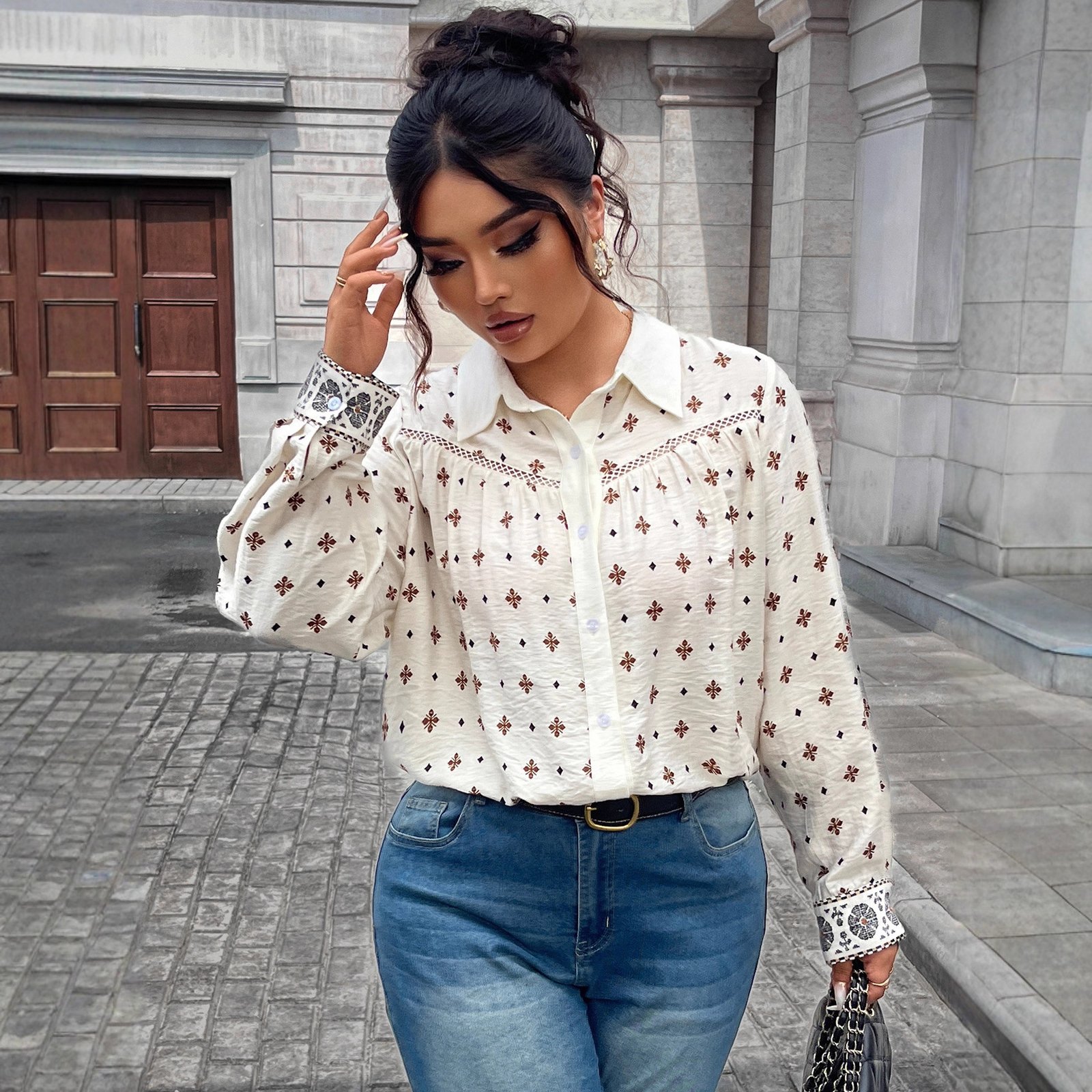 This chic women’s blouse is perfect for a stylish and casual look. Made from high-quality knitted fabric, it features a floral print that adds a touch of elegance. The lace detail enhances the overall design, making it a perfect choice for both work and leisure.