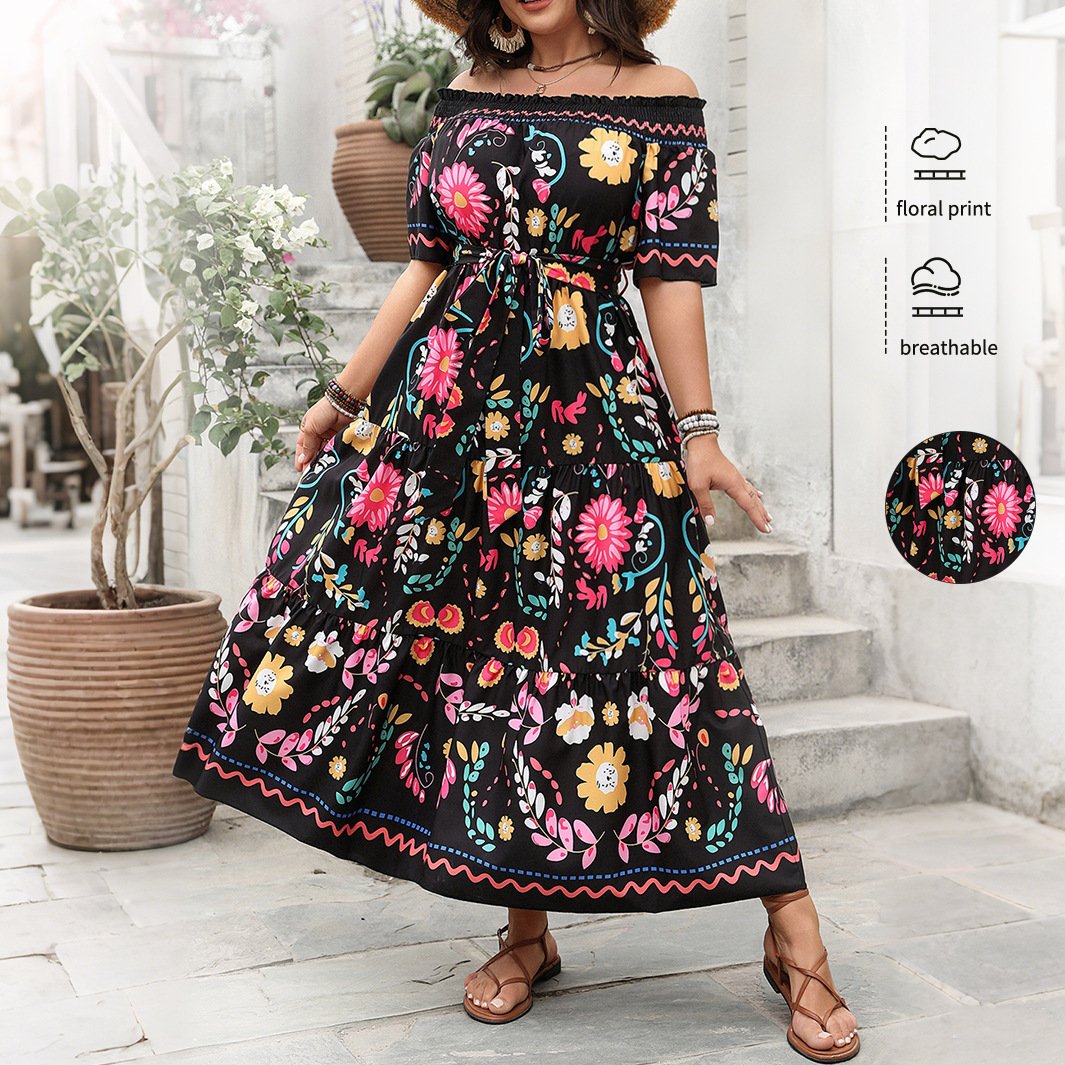 This stylish maxi dress features a unique color block design, perfect for making a statement. Designed with an elegant off-the-shoulder neckline and short sleeves, this gorgeous dress is ideal for casual outings, brunches, and summer gatherings.