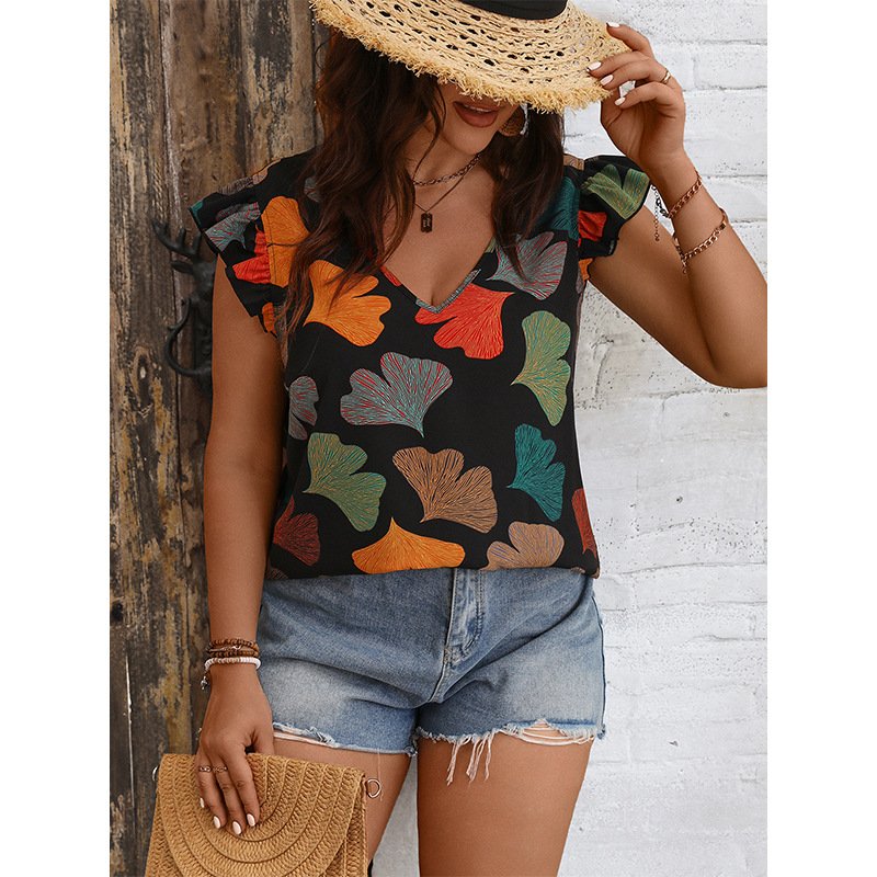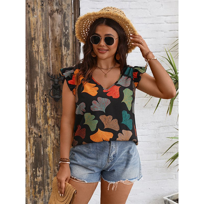 This stylish V-neck shirt features flutter sleeves and a slim-fit design to flatter every body shape. Made from high-quality polyester fabric, it is lightweight and comfortable for all-day wear. Perfect for casual outings or office wear, this shirt is versatile enough to dress up or down.