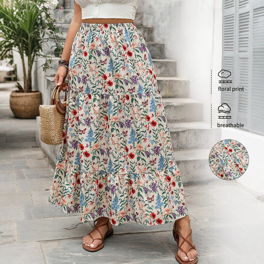 This beautiful skirt features a vibrant floral pattern, perfect for casual outings and summer vacations. Crafted from high-quality polyester, it ensures comfort and durability. The skirt showcases trendy design elements such as ruffles, pleats, and waves, making it a stylish addition to your wardrobe.