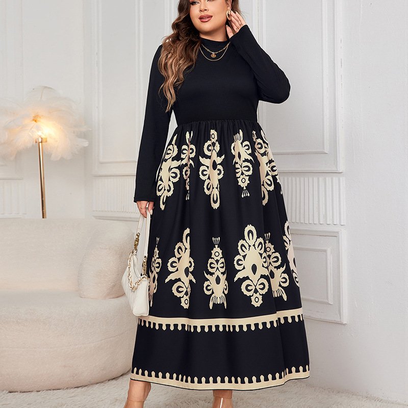 This beautiful high-waisted floral maxi dress is perfect for elegant casual outings. Made from high-quality polyester, it offers both comfort and style. The dress features a semi-high neck and long sleeves, making it a versatile addition to your wardrobe. Available in classic color options, this dress is designed to flatter all body types with its relaxed fit.