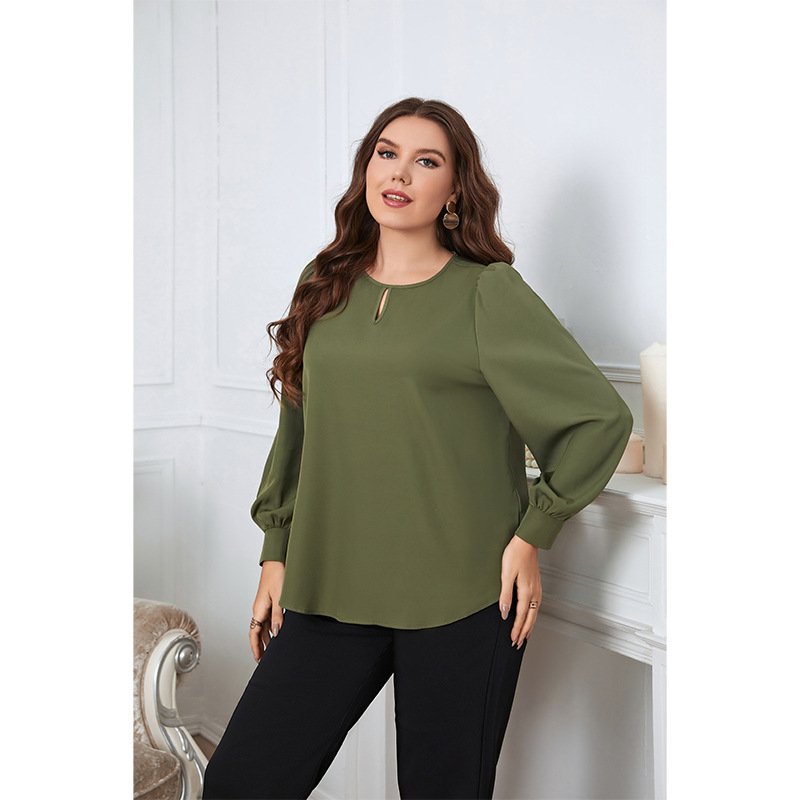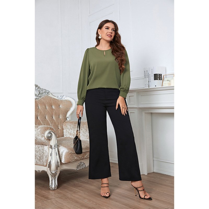 This green long sleeve shirt is designed for stylish comfort. Its relaxed fit makes it ideal for layering or wearing on its own, while the classic round neckline adds a touch of elegance. Perfect for casual outings or at-home lounging.