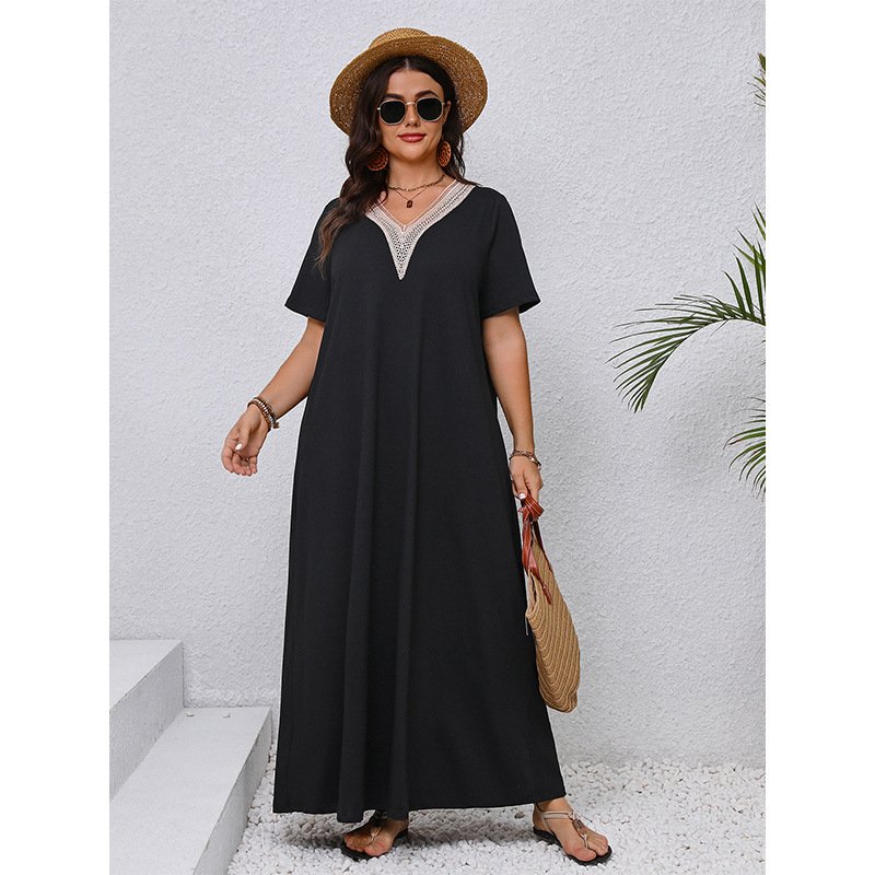 This elegant black dress is perfect for any occasion. The V-neck design flatters the neckline while providing a relaxed fit, making it a versatile addition to your wardrobe. Crafted from high-quality polyester, this A-line dress is both comfortable and stylish.