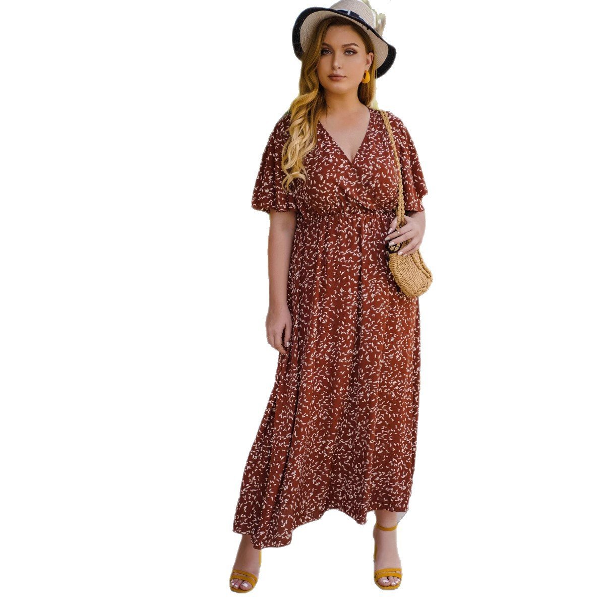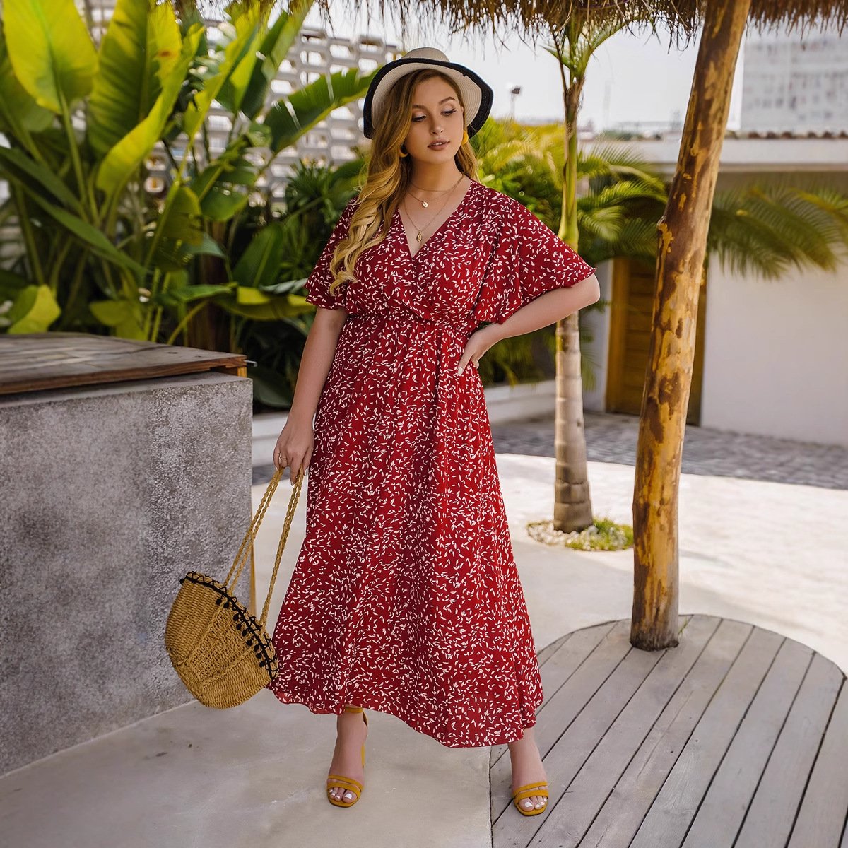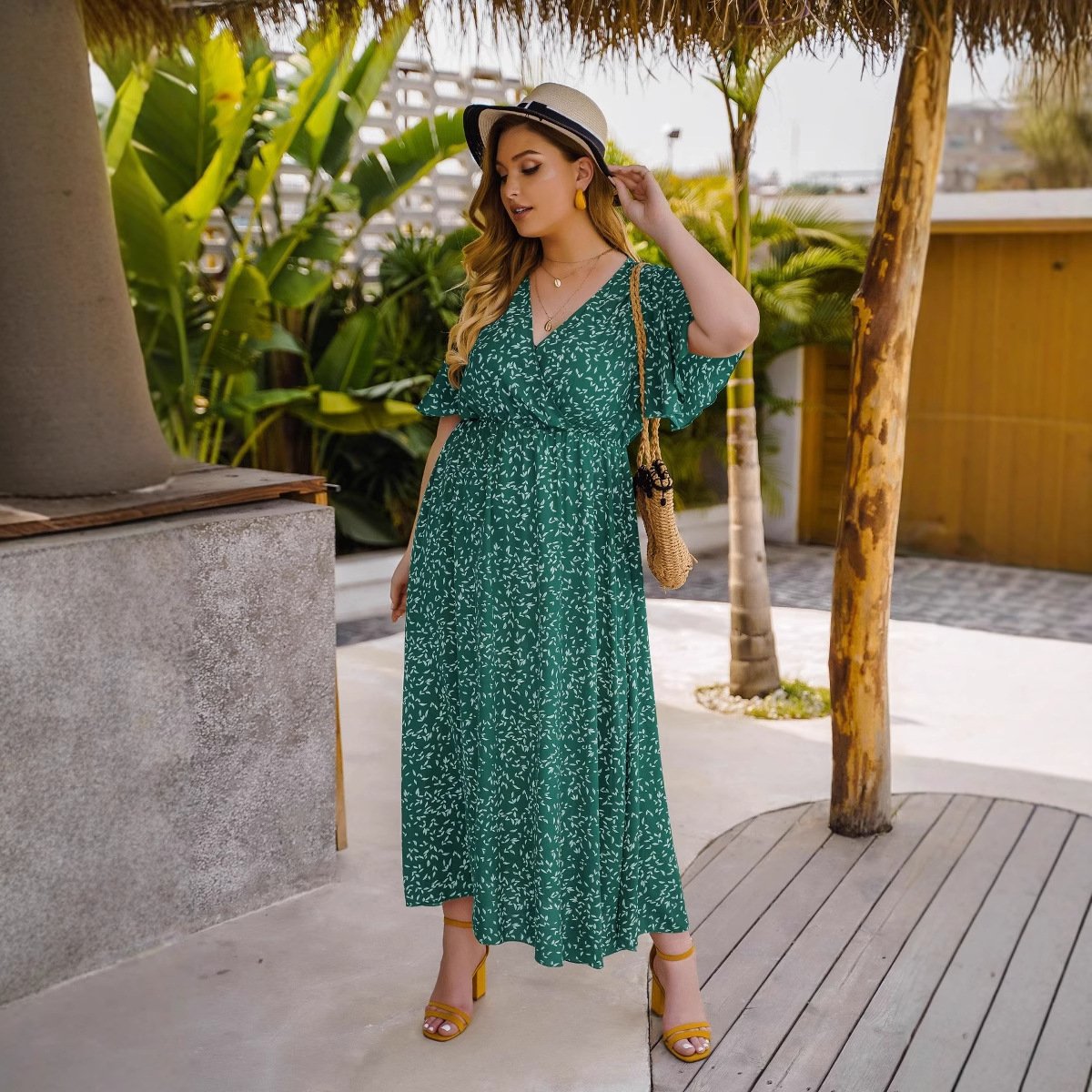 Summer V-Neck High-Waist Maxi Dress for Plus Size
