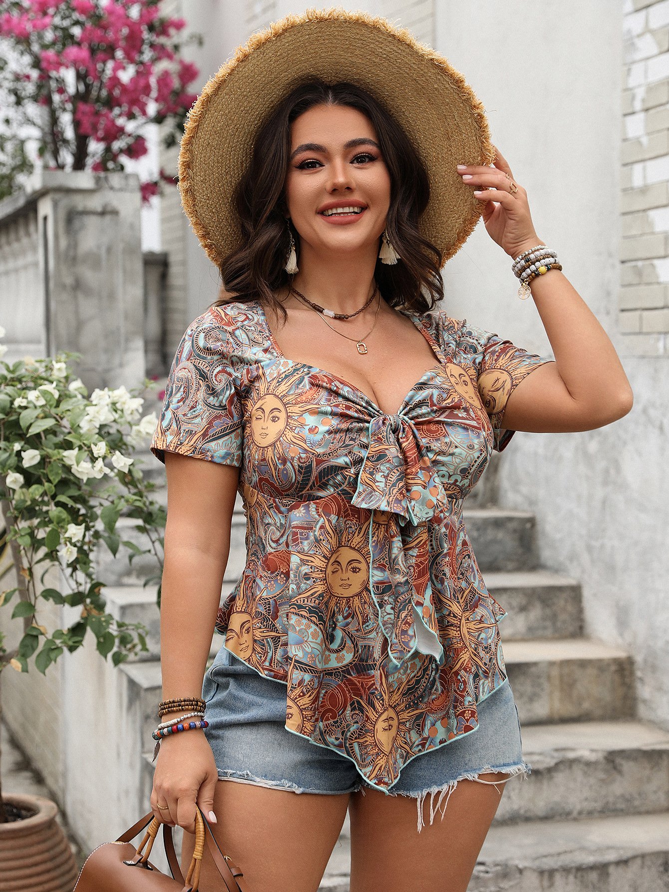 This trendy floral top is perfect for a chic casual look. Made from a comfortable and breathable fabric blend of cotton and polyester, it’s designed for everyday style.
