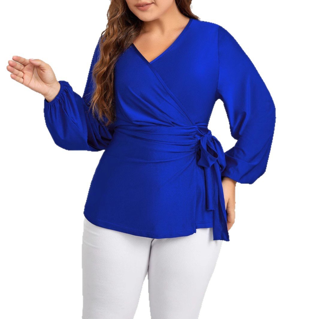 Elevate your outfit with our Trendy V-Neck Tie Long Sleeve Plus Size Women’s Blouse. Available in various sizes, it’s the ideal choice for those looking to combine comfort with style. Perfect for work or casual outings, this blouse is sure to become a staple in your collection.
