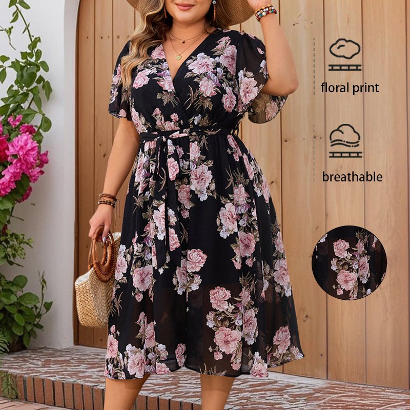 This elegant floral maxi dress is perfect for any occasion. The dress features a V-neckline, short shirt sleeves, and a flattering fit that cinches at the waist. Made from high-quality polyester, this dress is lightweight and breathable, making it comfortable to wear throughout the day.
