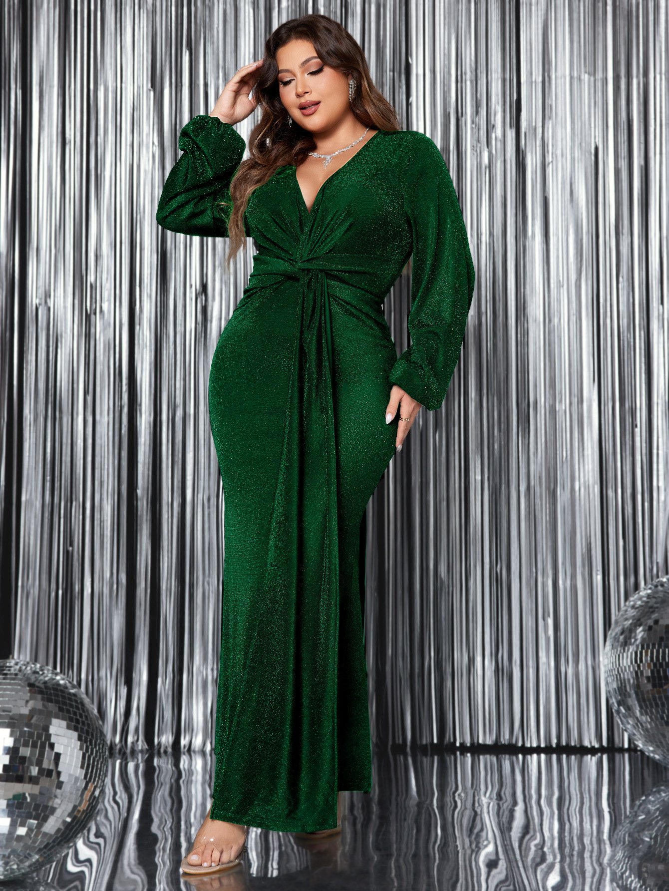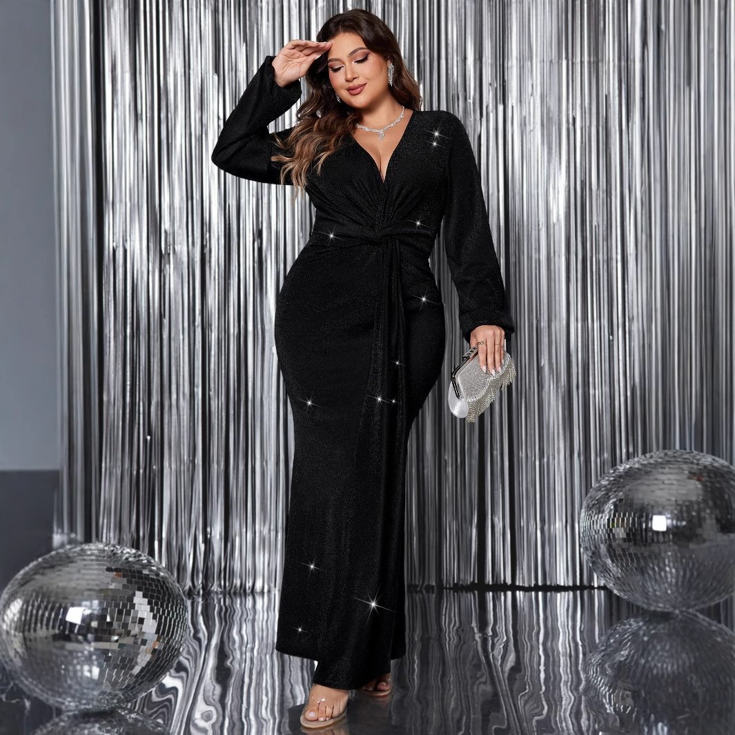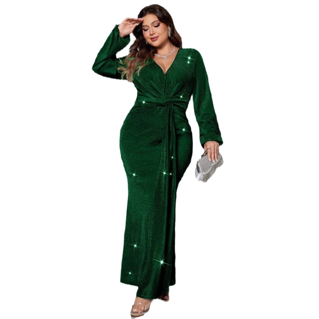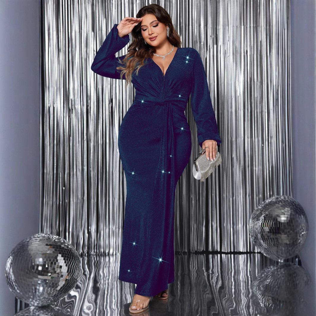 This stylish evening dress features a flattering mermaid silhouette and a classic V-neck design, perfect for formal events and parties. Made from high-quality polyester, it ensures comfort and a stunning appearance. The long sleeves add sophistication, while the added rhinestones create a touch of glamour.