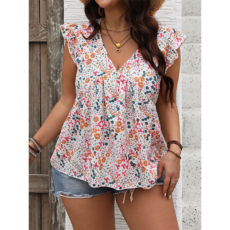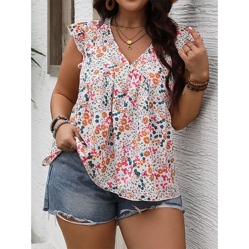 This stylish sleeveless blouse features a lovely floral print and a flattering V-neck design, perfect for a casual day out or a sophisticated lunch. Made from high-quality polyester, it offers both comfort and durability. Available in plus sizes, this loose-fitting top provides an effortless and chic look for any occasion.